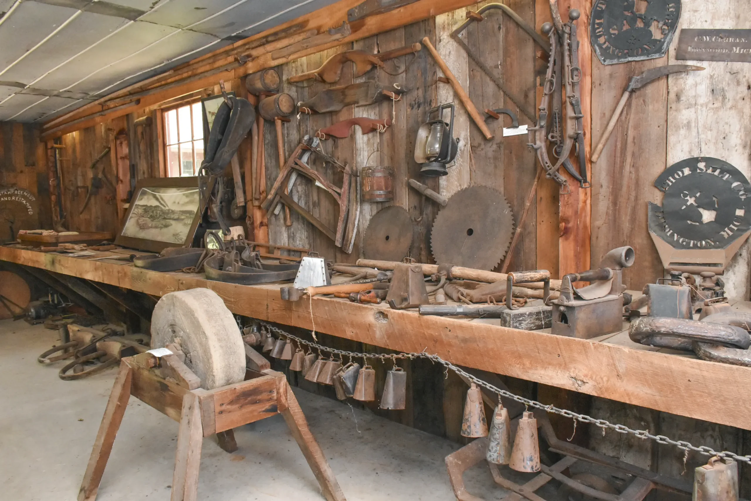 In the second half of the 19th century, white pine was king, makingMason County one of its most productive kingdoms. The Abe Nelson Lumbering Museum brings this defining era to life through the personal story and craftsmanship of a man who lived it. Abe Nelson worked in the lumber camps as a young boy before becoming a skilled blacksmith, shaping tools and equipment essential to the trade. The items throughout this museum come from his own shop and experiences, offering an authentic look at the tools, ingenuity, and daily work that supported Michigan’s lumber industry.