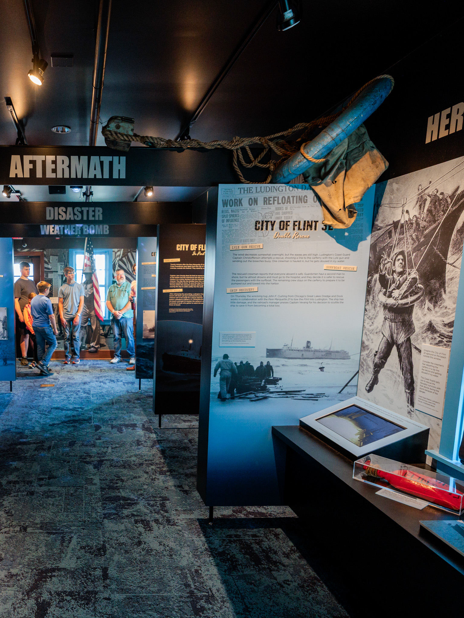 The Armistice Day Storm exhibit at the Port of Ludington Maritime Museum reconstructs that terrible day with chilling precision. Weather maps, survivor accounts, vessel histories, and period documentation trace how two dramatically different air masses — one warm and moist from the south, one brutally cold from the north — collided over the lake with lethal force.